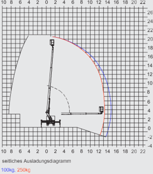 | Ausführung | LKW-Hubarbeitsbühne, Arbeitshöhe 20m, Reichweite hinten 14,5m, seitl. Reichweite 14,5m, Korbtraglast 250 kg, endlos drehbar, Vollhydraulische V-Abstützung mit Aufbauautomatik |